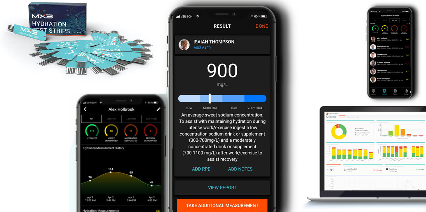 The MX3 Pro System uses a saliva sample from the tip of the tongue to take lab grade measurements in seconds. Using the portable handheld meter, disposable test strips, and an easy-to-use app, teams, trainers, military personnel and OSHA managers can finally measure, track, and manage users.